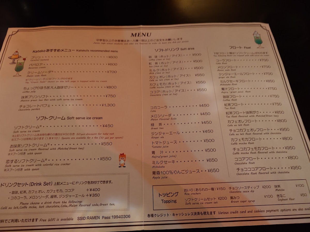 Customer reviews point to a consistent theme: the charm of the Showa era is alive and well at Kateko. From the carefully curated menu featuring timeless favorites like cream soda and bavarian cream to the quaint setting adorned with nostalgic memorabilia, every visit feels like a step back in time. As noted by visitor 4674 26, it’s the perfect spot to take a breather after indulging in delicious ramen.